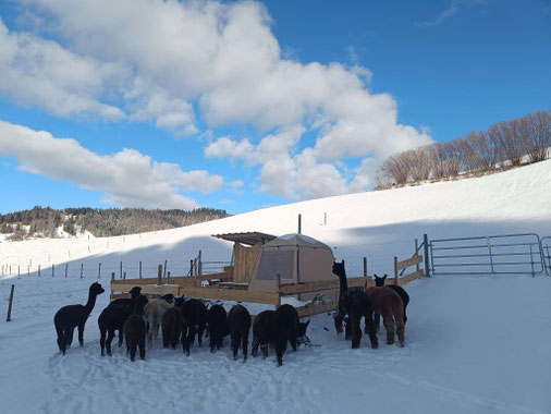 In Kooperation mit Summita Outdoor Sauna bieten wir dir ein ganz besonderes Highlight: Saunieren mitten in der Natur – mit Blick auf unsere friedlich grasenden Alpakas.